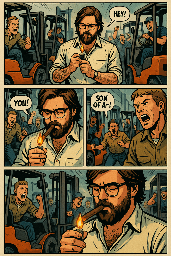 Years back in Kansas City, I walked onto a dock with my boss and straight into a scene out of Hoffa. A Teamsters BA and SOA were waiting—furious about scab operators. My boss didn’t even know if he’d ordered them. I had to step in.
