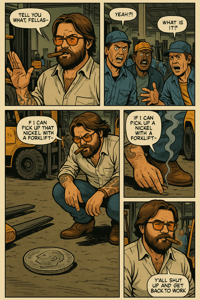 They might’ve tried once, but we sent ‘em packing with a Swirley, a boiled peanut, and a reminder that their suits looked dumb in 100-degree heat. You don’t shake down a man who knows how to fix his own truck and bury you behind a church in the same afternoon. Not down here.